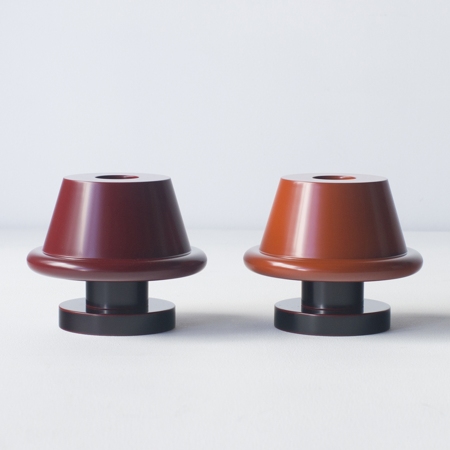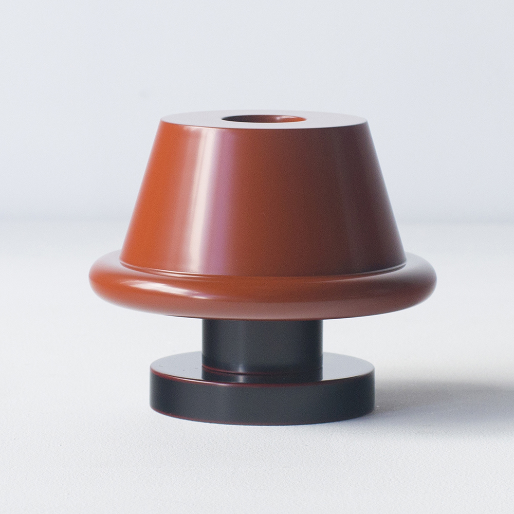 Designer : Ettore Sottsass Size : φ170 H140 Color : light vermilion and brown Manufacture : Marutomi