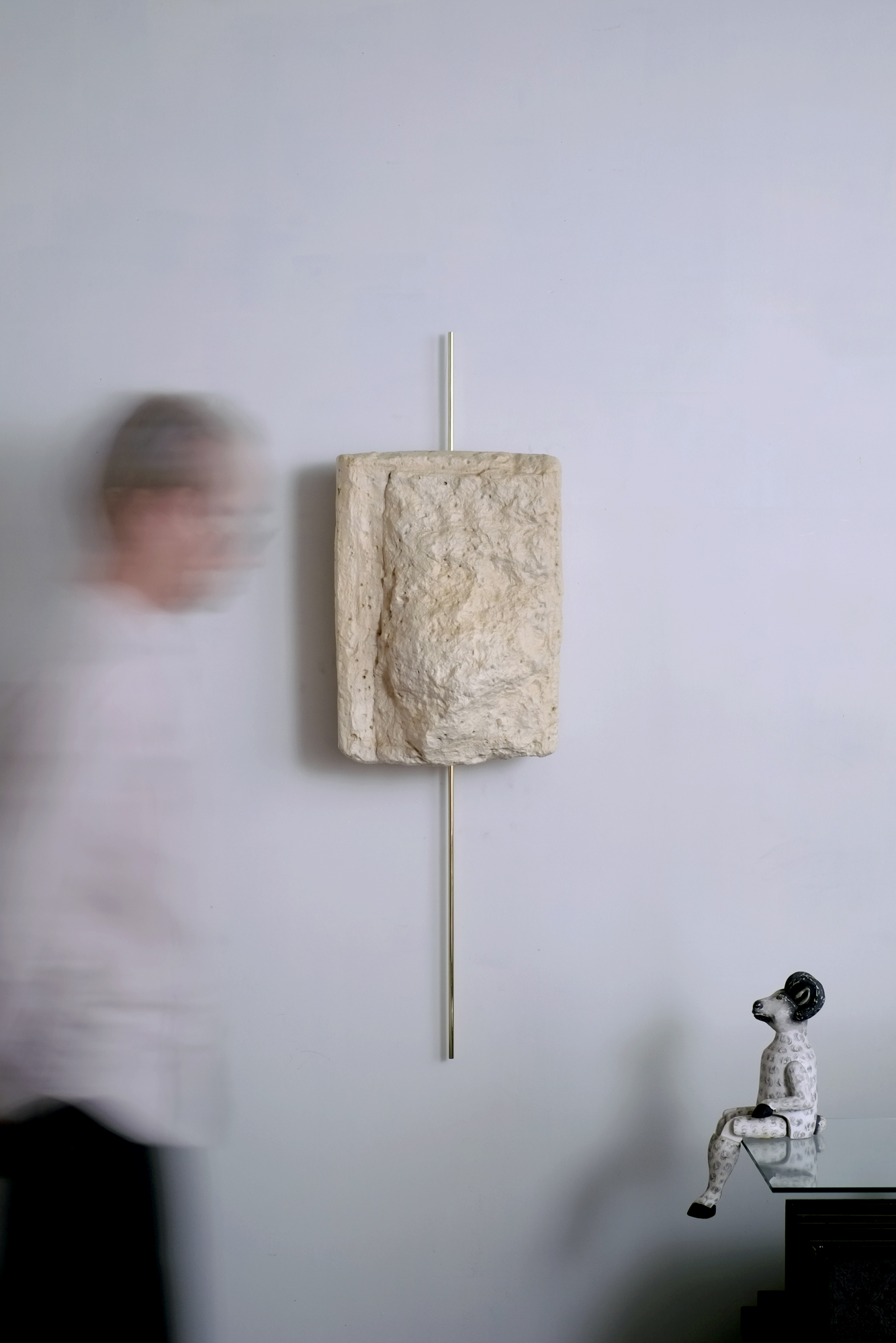 Wall hanging paper sculpture copied from flagstone had installed in a Japanese garden.
